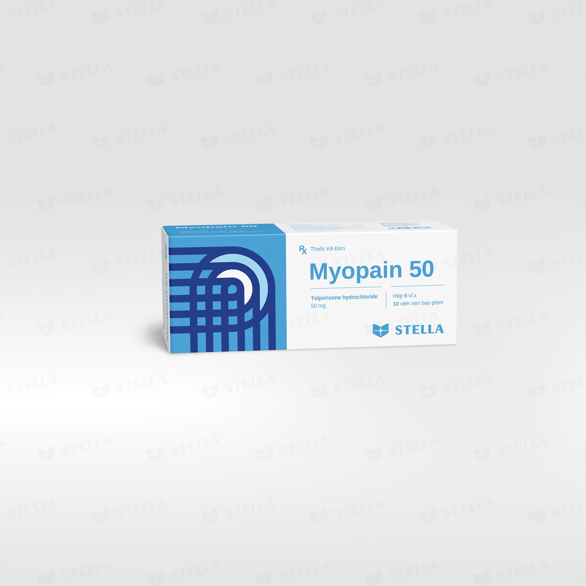Myopain 50 chứa tolperisone hydrochloride là một thuốc giãn cơ tác dụng trung ương.