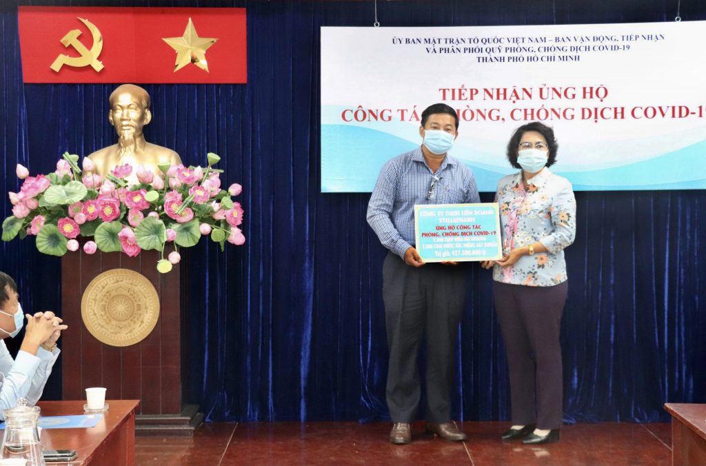 Thấu cảm sự vất vả của các nhân viên y tế cùng các lực lượng đang trực tại các chốt chặn kiểm dịch, ngày 03/06/2021, Stellapharm hưởng ứng lời kêu gọi của Ủy ban mặt trận Tổ Quốc Việt Nam đã tổ chức gửi tặng một số vật phẩm thiết yếu tới các chốt kiểm soát thuộc 22 quận huyện trên địa bàn Tp. HCM.