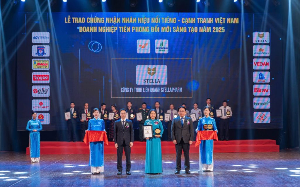 Vào tháng 8/2025, tại thủ đô Hà Nội, Công ty TNHH Liên doanh Stellapharm – với thương hiệu STELLA, đã chính thức được vinh danh trong chương trình Top 10 Nhãn hiệu nổi tiếng Việt Nam tại Lễ trao giải do Hội Sở hữu Trí tuệ Việt Nam tổ chức. Đây là một trong những sự kiện quan trọng được truyền hình trực tiếp trên sóng Đài Phát thanh – Truyền hình Hà Nội, ghi dấu bước tiến quan trọng của STELLA trong lĩnh vực Dược phẩm và Thực phẩm bảo vệ sức khỏe.