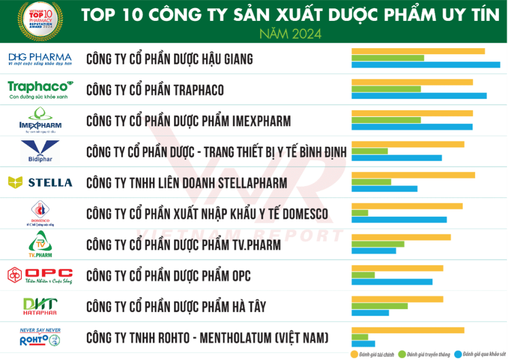Ngày 28/11/2023, Công ty cổ phần Báo cáo Đánh giá Việt Nam (Vietnam Report) công bố Top 10 Công ty Dược uy tín năm 2023. Lễ công bố và vinh danh các doanh nghiệp sẽ diễn ra vào tháng 1/2024 tại Tp. HCM. Các công ty trong bảng xếp hạng được đánh giá dựa trên